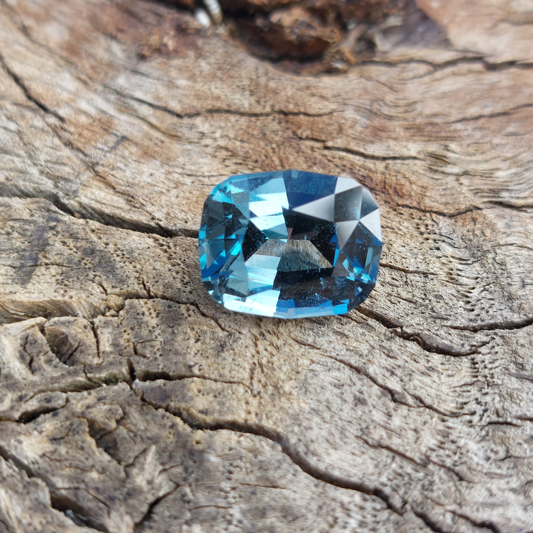 Species: Topaz Origin: Unknown Size: 12.5×10.2×7.7mm Weight: 7.80ct Clarity: Included Cut: Mixed Treatments: Irradiated